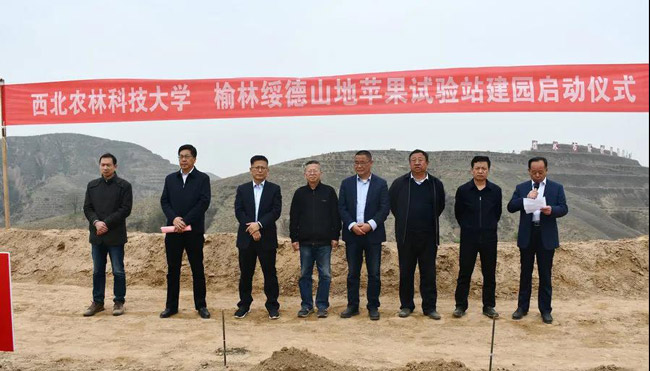 4月23日,西北农林科技大学榆林绥德山地苹果试验站建园启动仪式在绥德县艽园赵家坬现代生态农业产业园区举行。绥德县长姬跃飞讲话,国家苹果产业体系岗位专家、西北农林科技大学园艺学院教授赵政阳作了山地苹果试验站情况介绍,县委副书记张军主持。省市果业中心领导、县委办、政府办、农口部门、农业系统、果园代表及园区代表共计60余人参加了启动仪式。