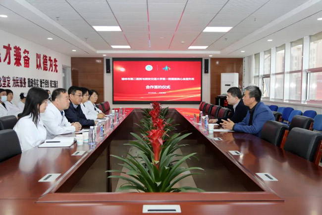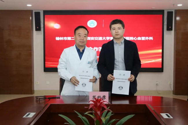 4月26日下午,榆林市第二医院与西安交通大学第一附属医院心血管外科签订合作协议。双方将本着资源共享、高质量发展的原则,开展心血管疾病外科救治共建项目。西安交大一附院心血管外科主任闫炀、党委书记郑建杰,榆林二院院长贺波、党委副书记刘烨、纪委书记任小梅、总会计师侯世芳出席签约仪式,副院长梁小平主持签约仪式。