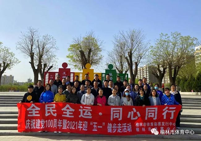 2021年4月29日上午9:00,榆林市体育中心联谊榆林市体育彩票发行中心在榆林市开发区健身公园组织庆祝建党100周年暨2021年迎“五一”健步走活动。本次活动,单位干部职工共40余人参加,意在强化引导全民健身理念,提升身体素质,打造健身团队,增强团队凝聚力和向心力,营造不掉队,不丢弃,同前行,共进步的单位文化理念。