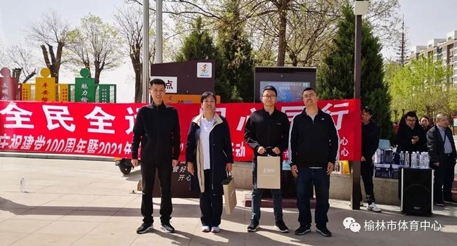活动共分男、女两个组别,榆林市体育中心负责人王龙龙、榆林市体育彩票发行中心主任宋永利分别给获得男、女组第一名的同志颁发奖品。