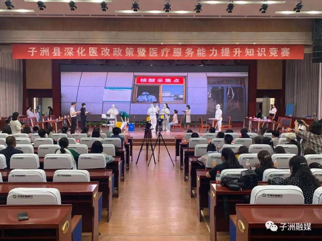 为了进一步深化医药卫生体制改革,全面提升医疗服务能力及新冠疫情防控能力,提高医共体内部人员对医改知识的知晓率,5月9日,子洲县医管委办公室组织县人民医院医共体、县中医院医共体的医护人员、乡村医生及公卫专干等开展深化医改政策暨医疗服务能力提升知识竞赛活动。活动邀请国家医学考试中心副主任何惧出席现场指导竞赛,县委常委、副县长白艳霞,县委常委、副县长宫国强,县人大常委会副主任白万祥出席活动。