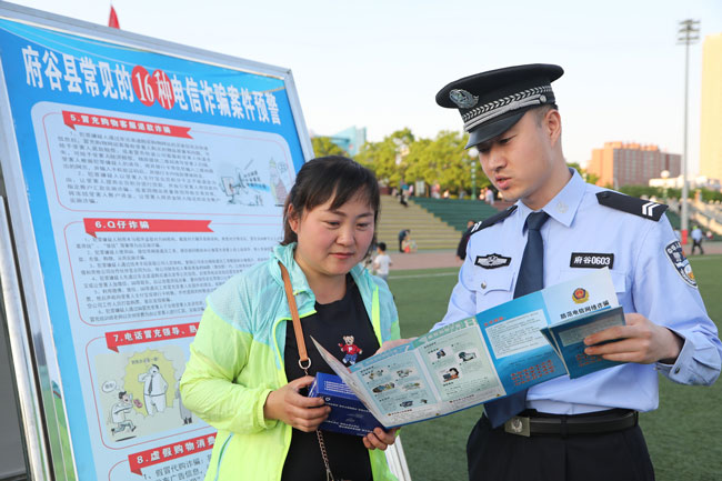 为有效遏制电信网络诈骗案件发生,进一步提高广大人民群众的防范意识,2021年5月17日,府谷县公安局刑警大队按照市局反诈中心统一部署要求,联合府谷人民银行及“三大运营商”在河滨公园进行了“5.17世界电信日”防范电信网络诈骗犯罪集中宣传活动。