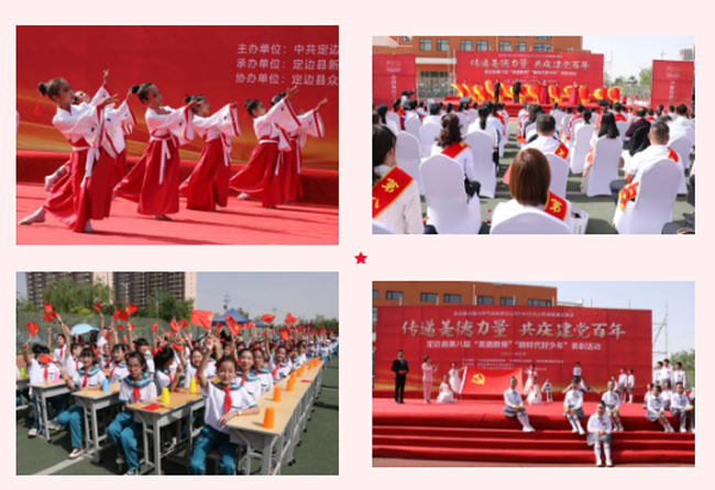 颁奖仪式上,由县教体局、定边中学、第五小学、第一小学师生精心准备的文艺节目使现场气氛热烈。《伟大的祖国伟大的党》《中华美德》《百年党旗下少年中国梦》等节目抒发了学生们热爱中国共产党、热爱祖国的深厚感情;配乐诗朗诵《做一名幸福的教师》表达了教师们甘愿奉献,愿意为教育事业奋斗终生的决心。在精彩的文艺节目中,对确立的20名“美德教师”和40名“新时代好少年”分别进行了颁奖。