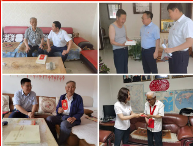 在走访慰问中,党委书记、董事长高长永同志一行来到退休老党员及困难党员家中,与他们亲切交谈,详细了解他们的家庭生活和健康状况,向他们介绍了农商行的业务发展情况和取得的各项成绩。同时,向他们送上党史学习相关书籍,传达近期的学习内容,确保退休老党员党史学习教育“不掉队”。