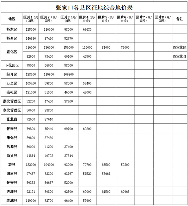 小编点评:桥西区是张家口的老城区,本次征地共计约46亩,其中东窑子镇瓦盆窑村约36亩,东窑子镇五墩台村约10亩,开发用途有居住用地也有道路用地,目前暂未公布征地补偿标准,下面小编为大家附上2020年张家口各区县征地最新的货币补偿标准,大家可以作为参考!