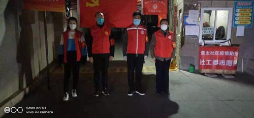 据社区有关负责人介绍,亚太社区的5个组长全是市直单位机关干部职工中的5名军转干部和退伍军人担任, 市疫情防控下沉社区组组长是参军24年转业地方工作已15年的参战军人、任副县级已18年的兰州市司法局四级调研员马维新担任。社区下设的四个组组长,第一组组长是军转干部市发改委干部曾涛;第二组组长是军转干部市发改委干部王克恭;第三组组长是军转干部市住建局干部方宏学;第四组组长是退役军人吴彦斌。每个小组都成立了临时党支部,他们在党旗下重温入党誓词,"若有战、召必回、战必胜",在疫情一线,纷纷请缨,越是艰险越向前,勇挑重担,担当作为,为核酸检测、防疫布控、公区隔离等顺利展开,积极上情下达、下情上报和各项工作圆满完成起到积极作用。
