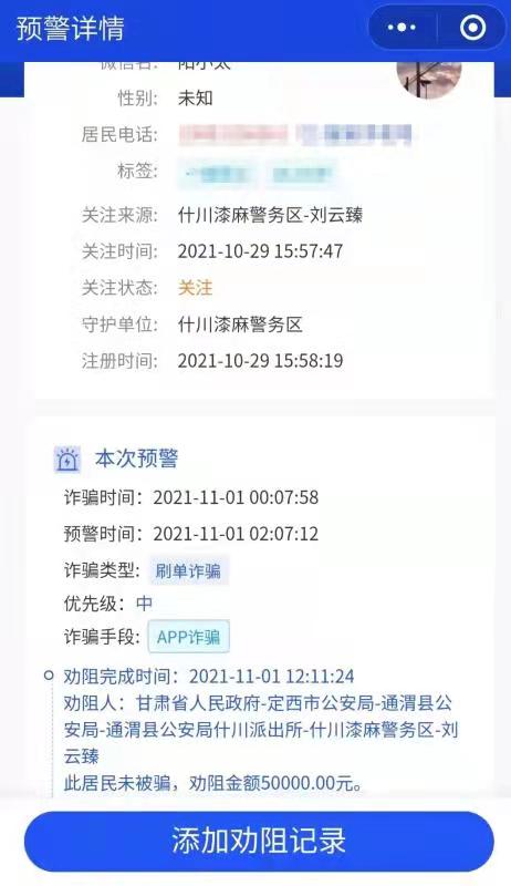 近日,甘肃省通渭县公安局什川派出所积极开展防范电信诈骗“金钟罩注册”和“国家反诈骗中心”APP的安装,并再次成功劝阻一起电信网络诈骗案件的发生,切实保护了人群众的“钱袋子”。