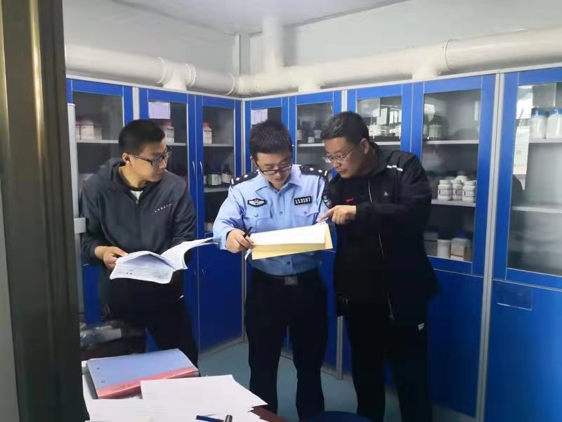 检查中,民警现场查看了易制毒化学品使用单位易制毒化学品购买、使用、存储等情况,并重点对易制毒化学品库房是否落实双人双锁安全制度、监控设备是否正常运转、登记台账与库存是否一致等方面进行了详细检查。对检查中发现的安全隐患问题,现场提出整改意见和整改时限。要求相关企业负责人要严格遵守《易制毒化学品管理条例》,强化责任意识,加强对企业员工的安全培训,严格落实各项安防措施,确保易制毒化学品不流入非法渠道。通过检查,增强了相关工作人员的主动防范意识和自我管理能力,加强了易制毒化学品管控,规范了易制毒化学品使用单位的安全管理工作,为易制毒化学品监管奠定了扎实基础。